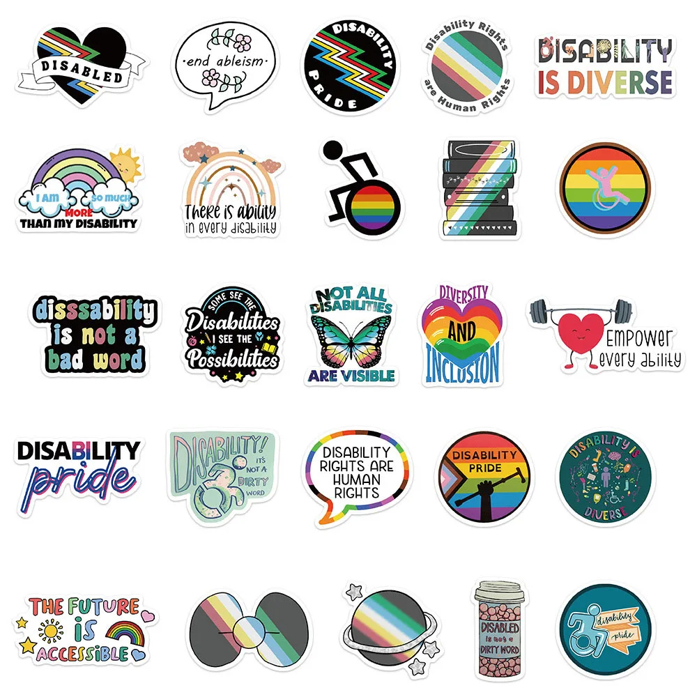 Get 10, 30, or 50 mixed disability pride stickers. Give them to people who ask you about your dog!