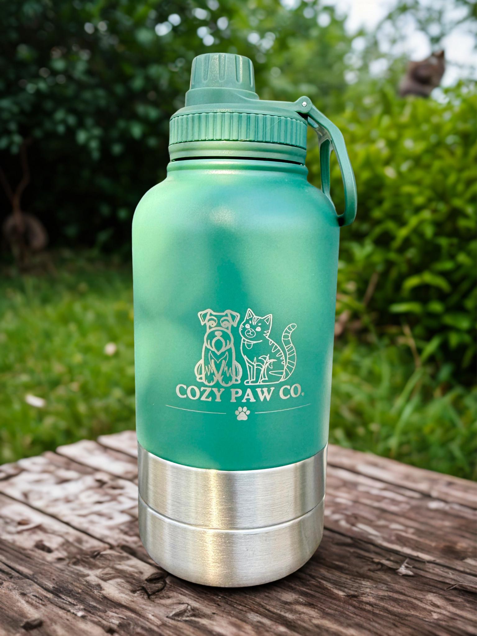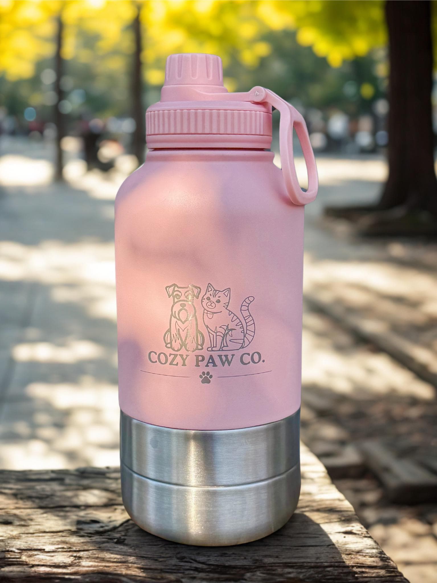 Keep your pup happy, hydrated, and fed wherever you go! 🐶💦🍖 Our 32oz 1L Stainless Steel Dog Travel Bottle comes with two built-in bowls—one for fresh water and one for dry food or treats. It’s perfect for hikes, beach days, road trips, camping, or daily walks!