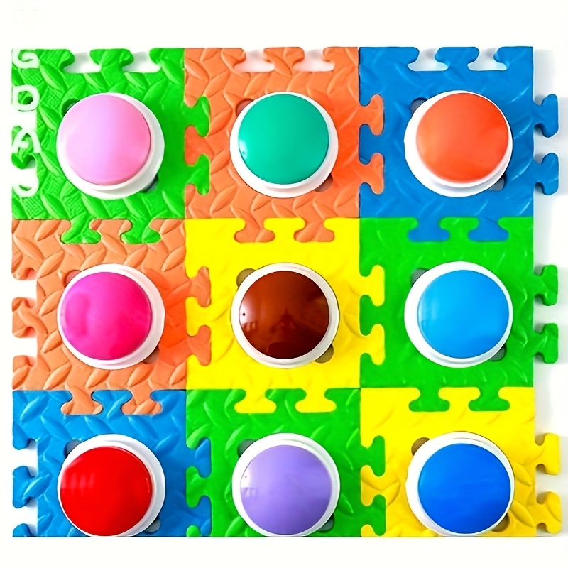 4-pack of interlocking mats with removable circle allowing large-size (3 inch) speech buttons. Beware – some dogs or puppies may try to chew these!