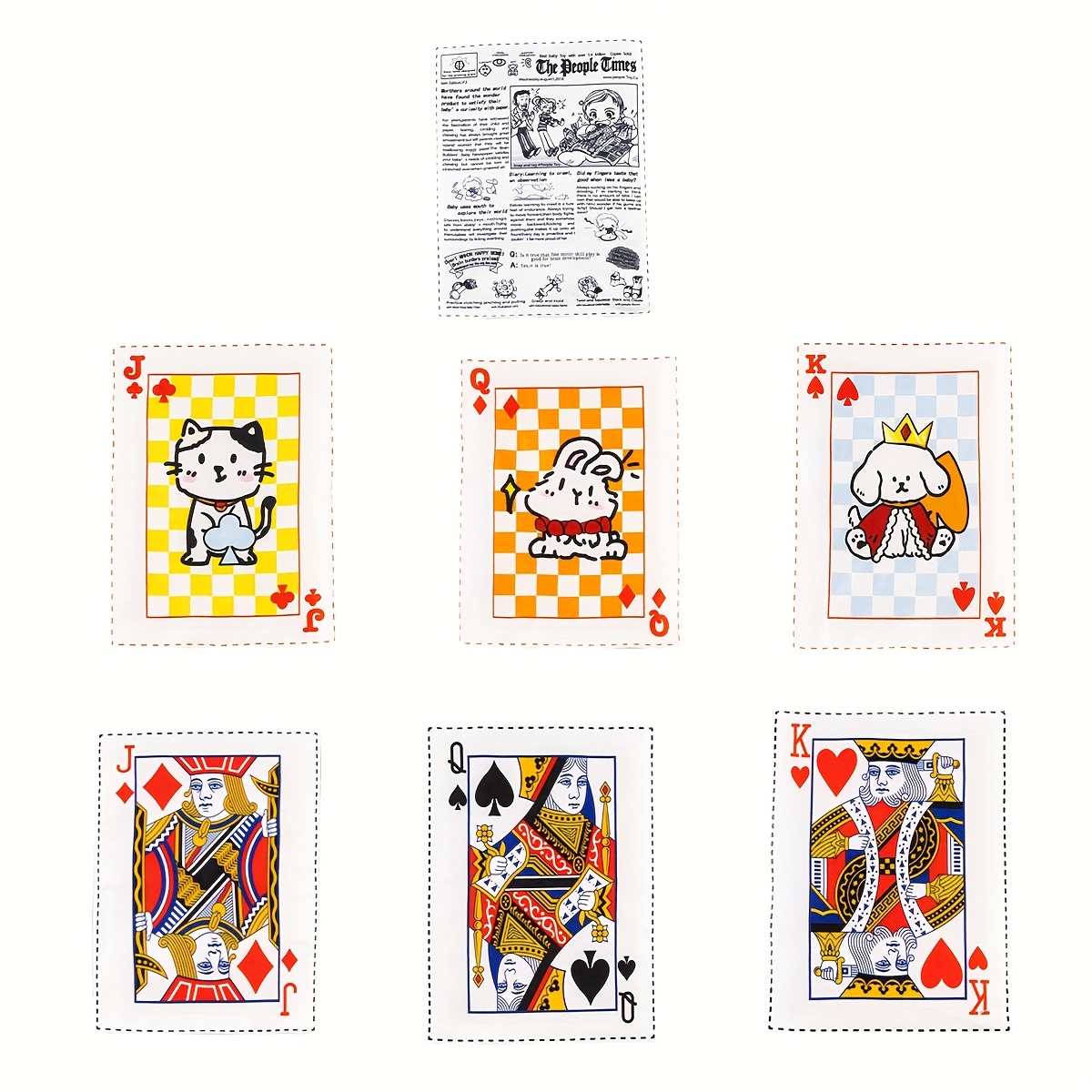 | Color | Queen Of Spades, Heart K, Cat J, 3-piece Poker Set (regular), Vintage Newspaper, Block J, Rabbit Q, Little Dog K, 3-piece Poker Set (Cartoon), 7-piece Poker Set |